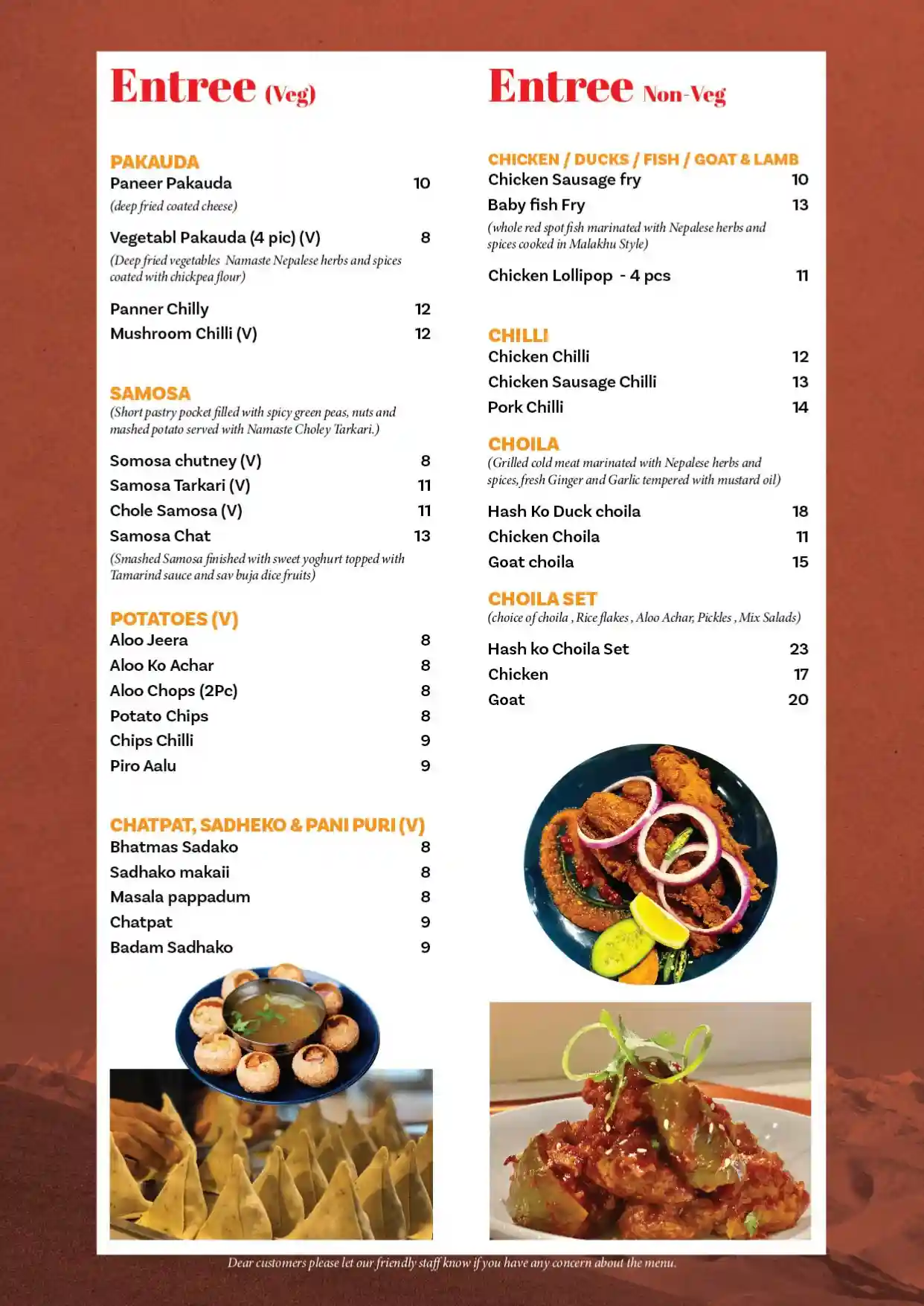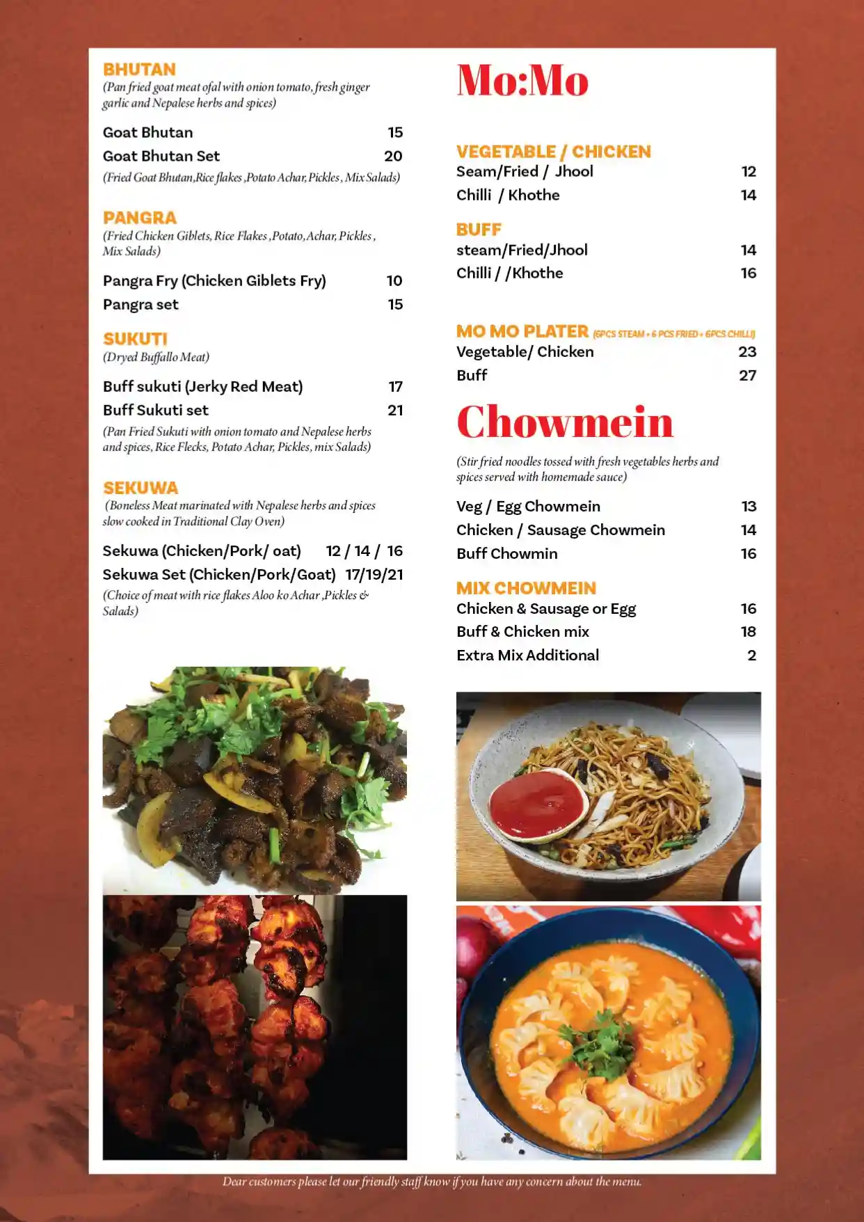Nepalese food is as diverse as the country itself with its varied ethnic groups. Our highly experienced chef has prepared the menu with meticulous care, so his customers can enjoy Nepal’s different varieties and flavors.